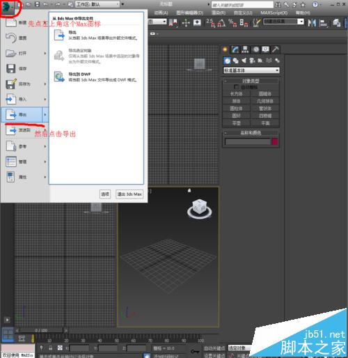 2、然后点击左上角的Max图标(老版本的应该叫文件)然后点击导出。