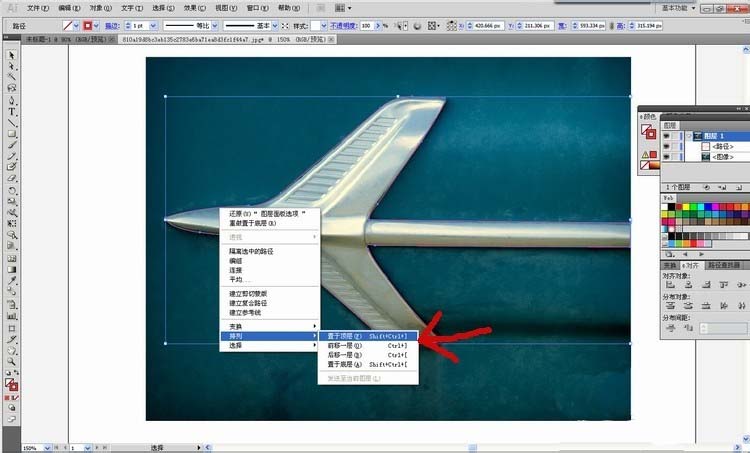 5、点击已勾勒完的封闭图案,右键选择排列在最上。原则就是勾勒的图形在上,被抠的图形在下。