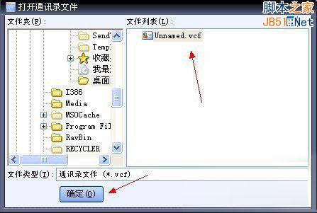 2、弹出“打开通讯录文件”的对话框,在左侧文件夹列表中浏览到要打开通讯录文件的位置,选中后单击“确定”按钮。