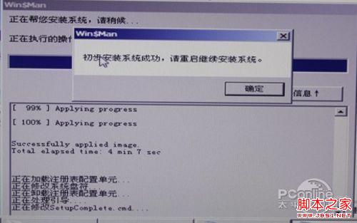 100%之后,Win$Man会提醒用户重启电脑!