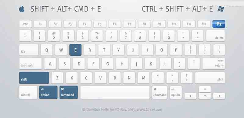 盖印图层,简单说就是将当前所有图层(及效果)合并,且生成一个全新的图层,打个比喻来说,这是一种“无损合成图层”,并不会破坏之前的任何图层,方便我们在设计中“反悔”去修改,而又能满足进一步修饰、设计的目的,实乃PS操练中必备之大法。