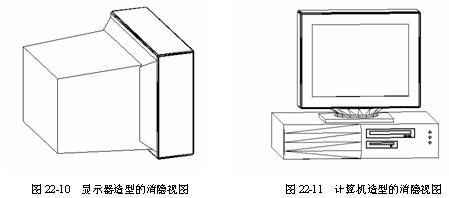 图标,并在提示下选择棱柱体和棱锥体,回车确认后,系统将创建一个组合的实体。现在整个显示器造型就全部创建完了,下面使用消隐命令查看绘制的成果,如图22-10所示。