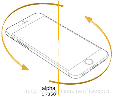 陀螺仪事件为deviceorientation,这里主要获取事件中的alpha,beta,gamma。