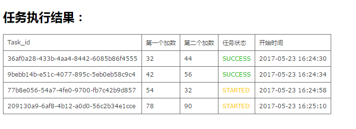 点击查看任务链接,查看所有任务的执行情况:sucess表示执行成功,started表示已经开始执行了。