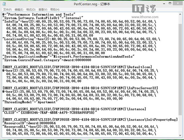 2、复制以下内容,另存为PerfCenter.reg,导入注册表,添加性能信息和工具功能