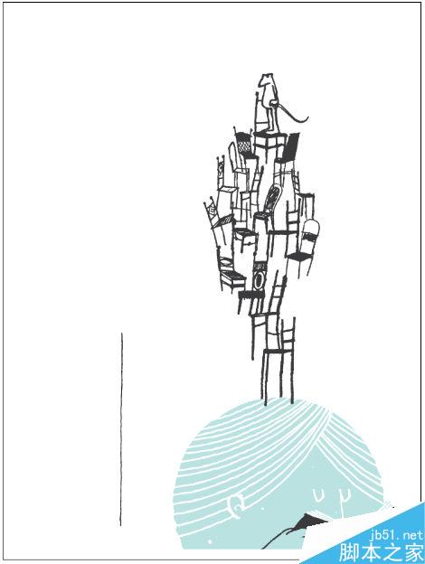 我的矢量元素多得像个银行,我就从里面拿出一个圆形放在了椅子的下面,去掉了下面的小老鼠。这次,我想到了一个切合主题的好想法,我想像堆积的椅子和上面的老鼠都是来自大脑的想像。