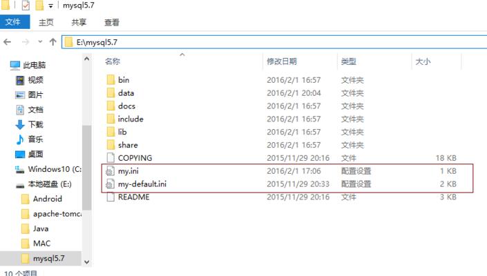 第三步 新建一个my.ini文件,然后用记事本打开输入mysql的基本配置: