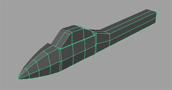 使用“插入环线工具”(insert edge loop tool),刻画出机舱的弧形细节