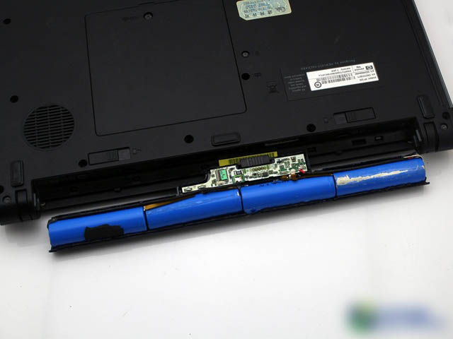 有些笔记本电池内电芯的接触片采用铆接,电池表面难于点焊,这里应当将接触片和旧电池分离,在安装新电池时将接触片和新电池的接触片进行点焊。