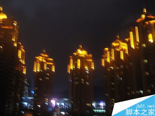 6、在用数码相机在夜间拍照高楼的装饰灯的时候要仰头拍照。