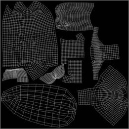 1)在UV规划的时候一定要注意:我们进入ZB雕刻完成后,回到MAYA渲染时用的法线和置换贴图的数量一定要越少越好。这样不仅可以节省很多很多的节点,还可以节省很多的内存,等等,还有很多好处。另外,在后面渲染的时候,也不至于平凡出错或被卡死。记住,这一步一定要做充分,如果出了差错,后面所有的制作都将会白做。我用UVlayout展平UV,将人体放一张,石头放一张,马放一张。(注意:ZBRUSH很娇气,我们的UV不可以死死的贴着U向和V向的坐标轴)