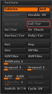 (4)画好以后,把RBG的笔刷透明度调到100,在Texture菜单中NEW一张白色的贴图,贴图的大小在里面也可以设置。在Tool菜单下的Texture中点Col>Txr,把顶点颜色投射到贴图上,保存出去。