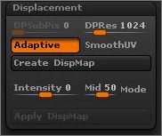 (2)在MULTI DISPLACEMENT 3下调整好置换贴图的大小,然后,在Tool菜单下找到Displacement选择Adaptive,如图: