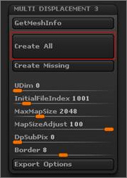 (1)把模型调到一级。找到Zplugin菜单>MULTI DISPLACEMENT 3>Export Options,将他设置如下: