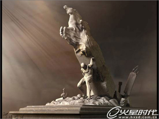 这是一个以四川5.12地震为题材创作的作品。因为制作时间过于短暂,所以我选择了使用ZB和MAYA来制作雕塑类型的静帧。这样做,既可以达到效果,又可以大大缩短制作时间,当然,这里边所涉及的技术也不会过于难。