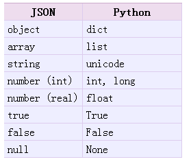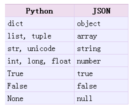 这里就是先对一个数据json编码,然后再将编码后的数据解码。照理说,解码后的数据应当和原先的数据一样,但是我们发现这里元组对象都被替换成列表对象了。这边就涉及到python和json互相转换的数据格式定义了。看下面两个图:
