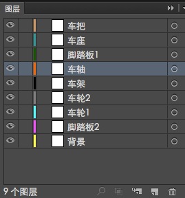 fn+F7呼出图层面板,分别对山地车部位新建图层,命名如下: