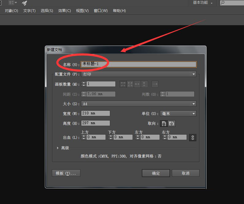 名称:即新建文档的文件名称,在新建是可填写可不填写,一般保存文件的时候填写文档名称;