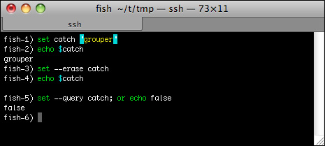 fish 提供 --query 选项来检查是否定义了一个变量。如果已经设置了此变量,set --query 返回状态码 0,这表示没有出现错误;否则,返回 1。语句 6 用 or 操作符连接两个命令:第二个命令(echo)只在第一个命令失败的情况下执行。