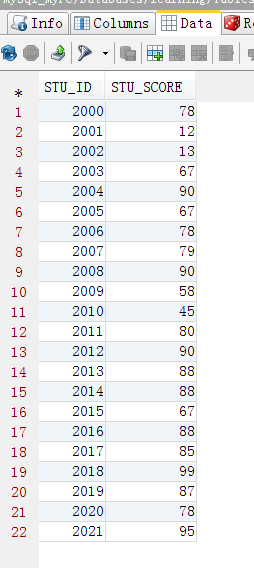 成绩表(STU_ID是学生表是外键关系):