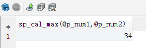 SET @p_num1=2; SET @p_num2=34; SELECT sp_cal_max(@p_num1,@p_num2);