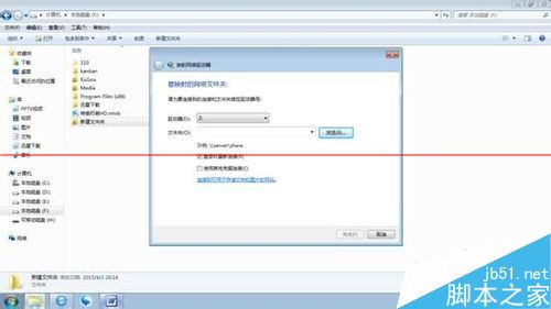 4、驱动器号,选择一个上去,文件夹:找出刚刚共享的文件,如图: