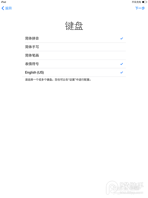 2、因为新版的iPad配置的是全新的IOS7系统,所以其激活界面是跟以往的iPad是完全不一样的,首先看一下开机之后首先看到的界面: