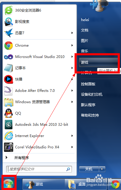1.在开始菜单右侧找到游戏,单击鼠标左键进入。