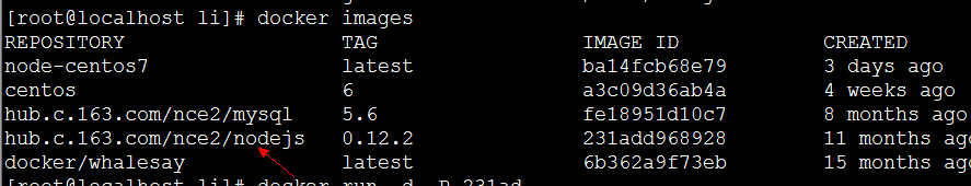 下载完后查看我们的镜像,找到他的名称,等会我们会用到