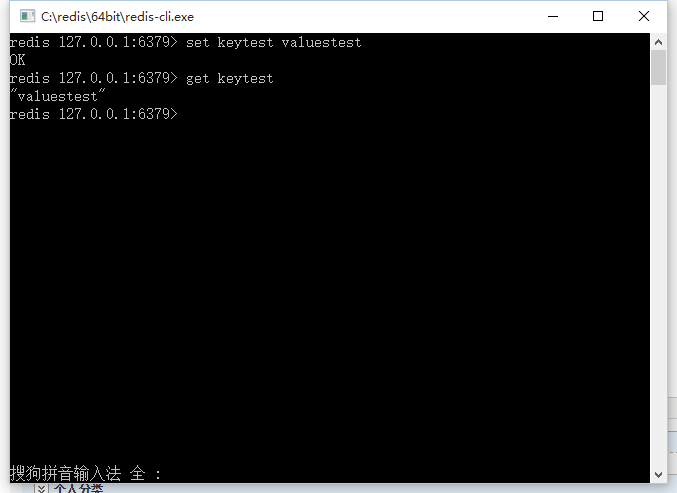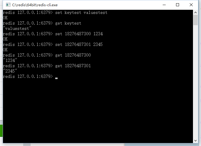 redis-cli.exe -h 127.0.0.1 -p 6379 set keytest valuestest get keytest