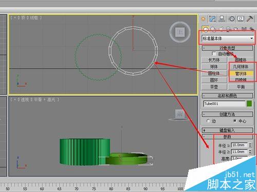 4、使用标准基本体中的管状体画出瓶盖的拧口处