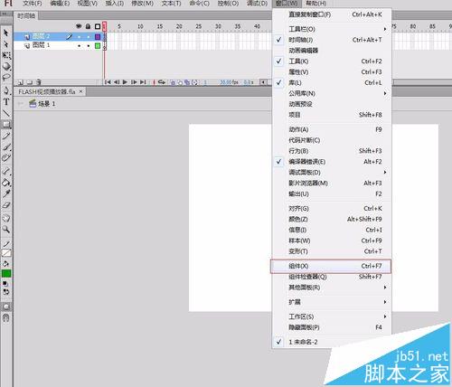 1、首先,新建一个AS3文档,保存为FLASH视频播放器。然后打开组件窗口(CTRL+F7)。