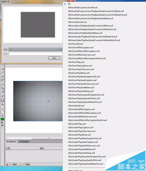 7、如果不成功,组件会不显示内容。这时就需要对视频进行转换,因为组件播放仅支持为数不多的编码格式。接下来设置播放器的皮肤和控制功能。
