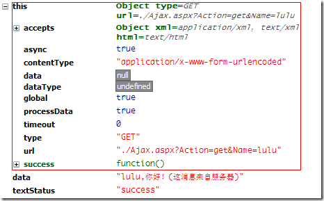 Response.Write("{result: ''" + Request["Name"] + ",你好!(这消息来自服务器)''}");