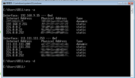 解决办法:开始-cmd-arp -d 清楚arp列表