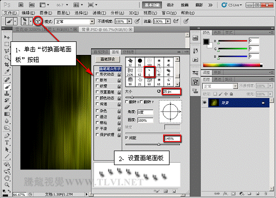(5)确定“画笔”工具为选择状态,在画笔调板中对画笔进行设置。