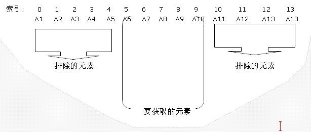 R1 和R2 代表两个区间范围索引,即在索引4(不含索引4) 到 索引10(不含索引10) 之间的元素,是我们要取出的元素