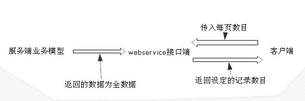 从上图中,看到不管数据表中有多少数据,每次返回到客户端的数据都是一页的数据,这种方法没有采用存储过程方式,而是在webservice端进行处理的。