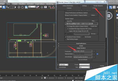 3、在渲染面板下的common中找到最下面的渲染选择选项Assign Renderer。选择有三点的选框将默认渲染器切换为V-Ray adv选项,切换后可以看到渲染面板多了V-Ray渲染的参数选项。