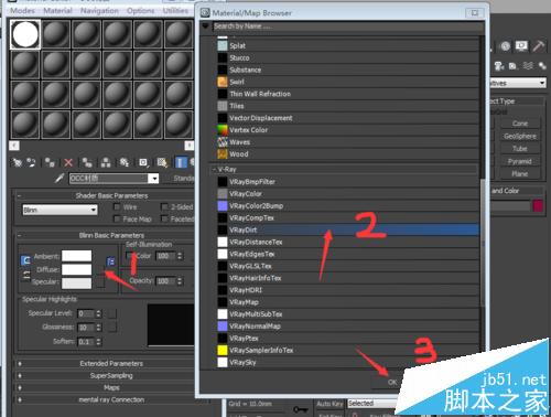 10、在固有色通道即漫反射贴图通道中找到V-Ray材质中的VRayDirt材质,双击VRayDir打开编辑参数面板。这里我们主要是利用VRayDirt材质来调整OCC通道图渲出效果。