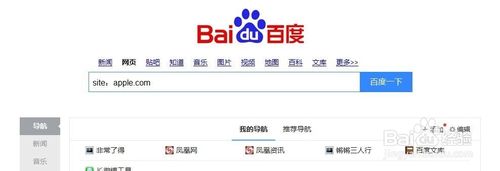 2、在搜索框输入site:域名。以苹果公司为例 site:apple.com 然后点击搜索