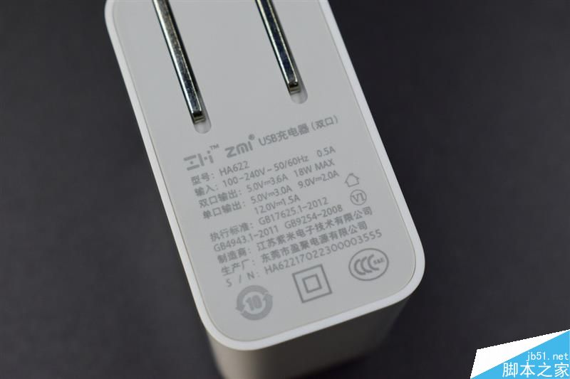 所有的Logo、电气参数等都标注在插头端面,每个充电头还有独立SN,这点不错。
