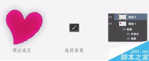画出心形,然后选择画笔工具进行调整,建立一个选区图层。