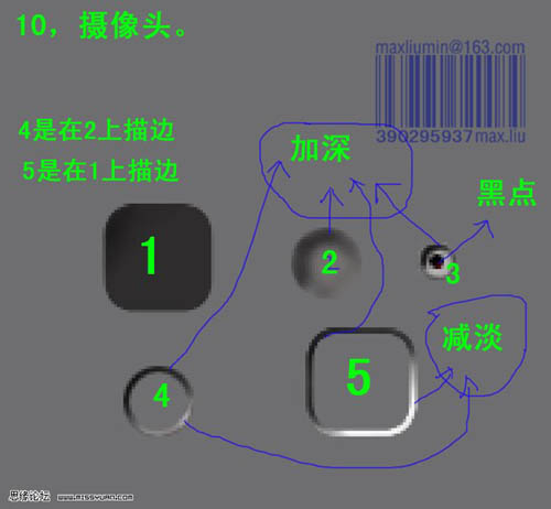 3、听筒的结构,画出底图后用加深减淡工具修饰。