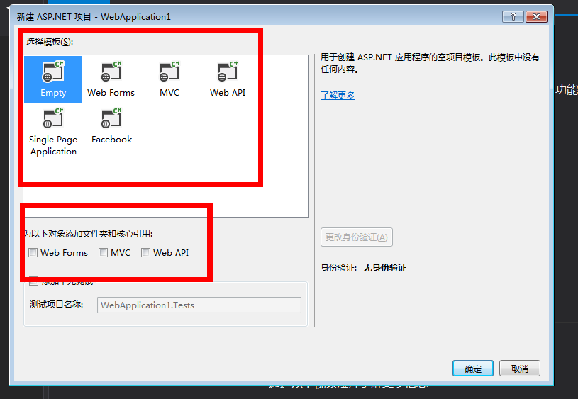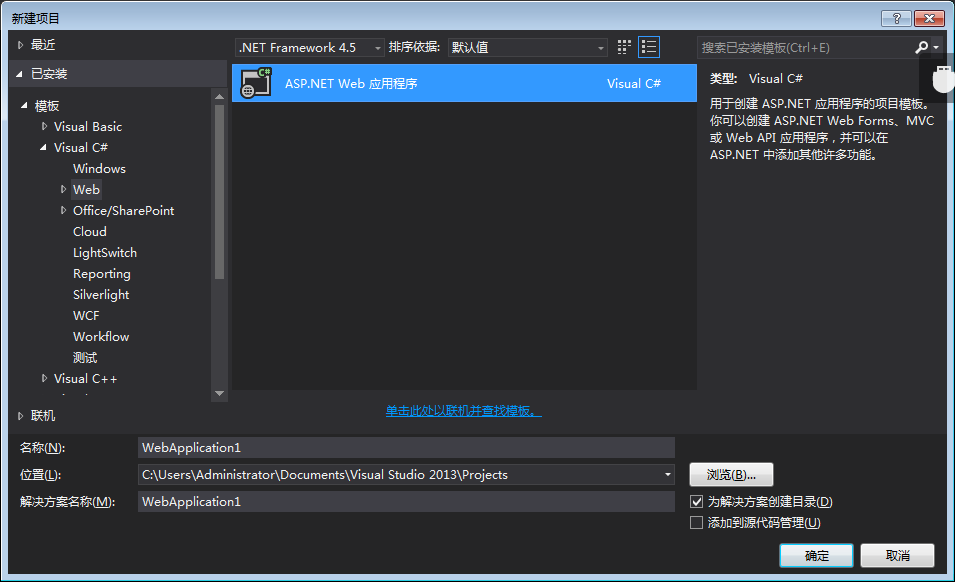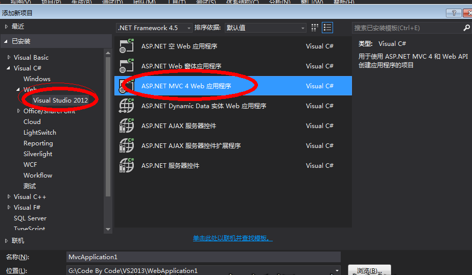 可以看到在.Net Framwork 4.5的版本中现在只有一个模版了。好吧先点进去再看
