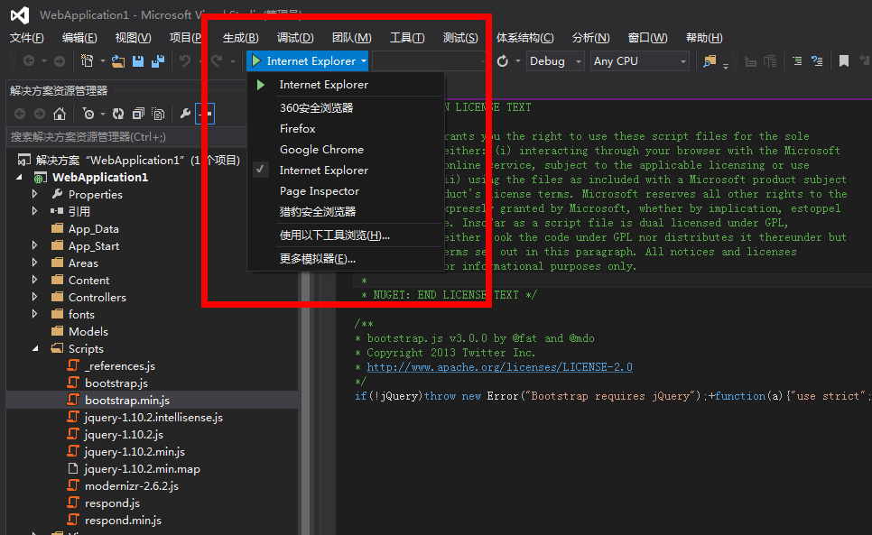 可以搜集到你本地所有的浏览器,然后你可以直接选择你要使用的浏览器进行预览或者调试就可以了,比以前是方便多了,这个功能在VS2012中也有了,不过在这里再记录一下。
