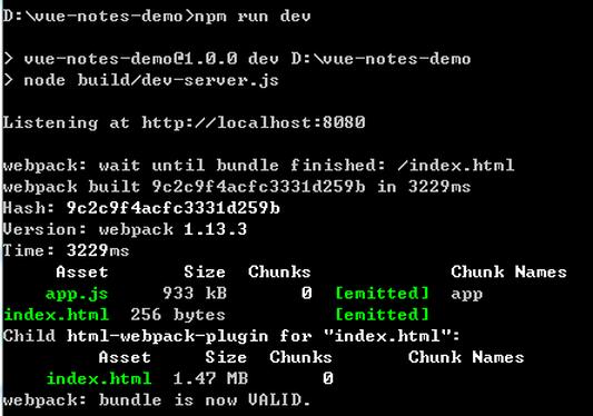 vue init webpack vue-notes-demo cd vue-notes-demo npm install // 安装依赖包 npm run dev // 启动服务