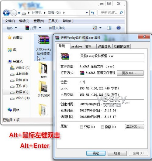 另外,我们还可以先用鼠标选中目标文件或者文件夹,然后按下“Alt+Enter”组合键也可以直接查看属性。
