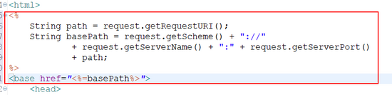 <% String path = request.getRequestURI(); String basePath = request.getScheme() + "://" + request.getServerName() + ":" + request.getServerPort() + path; %> <base href="<%=basePath%>" rel="external nofollow" >