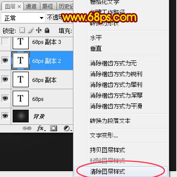 7、按Ctrl + J把当前文字图层复制一层,同上的方法清除图层样式,效果如下图。